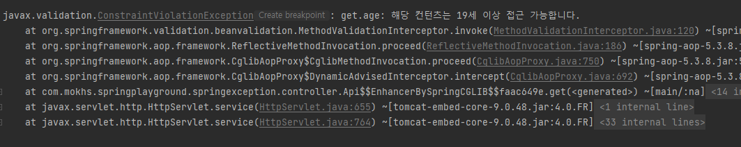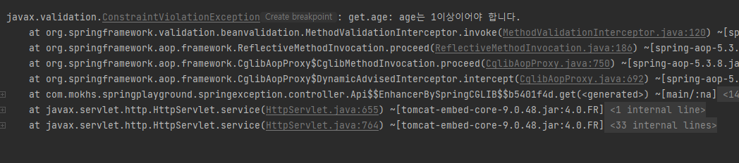 @RequestParam @Min(value = 1, message = "age๋ 1์ด์์ด์ด์ผ ํฉ๋๋ค.") Integer age) {